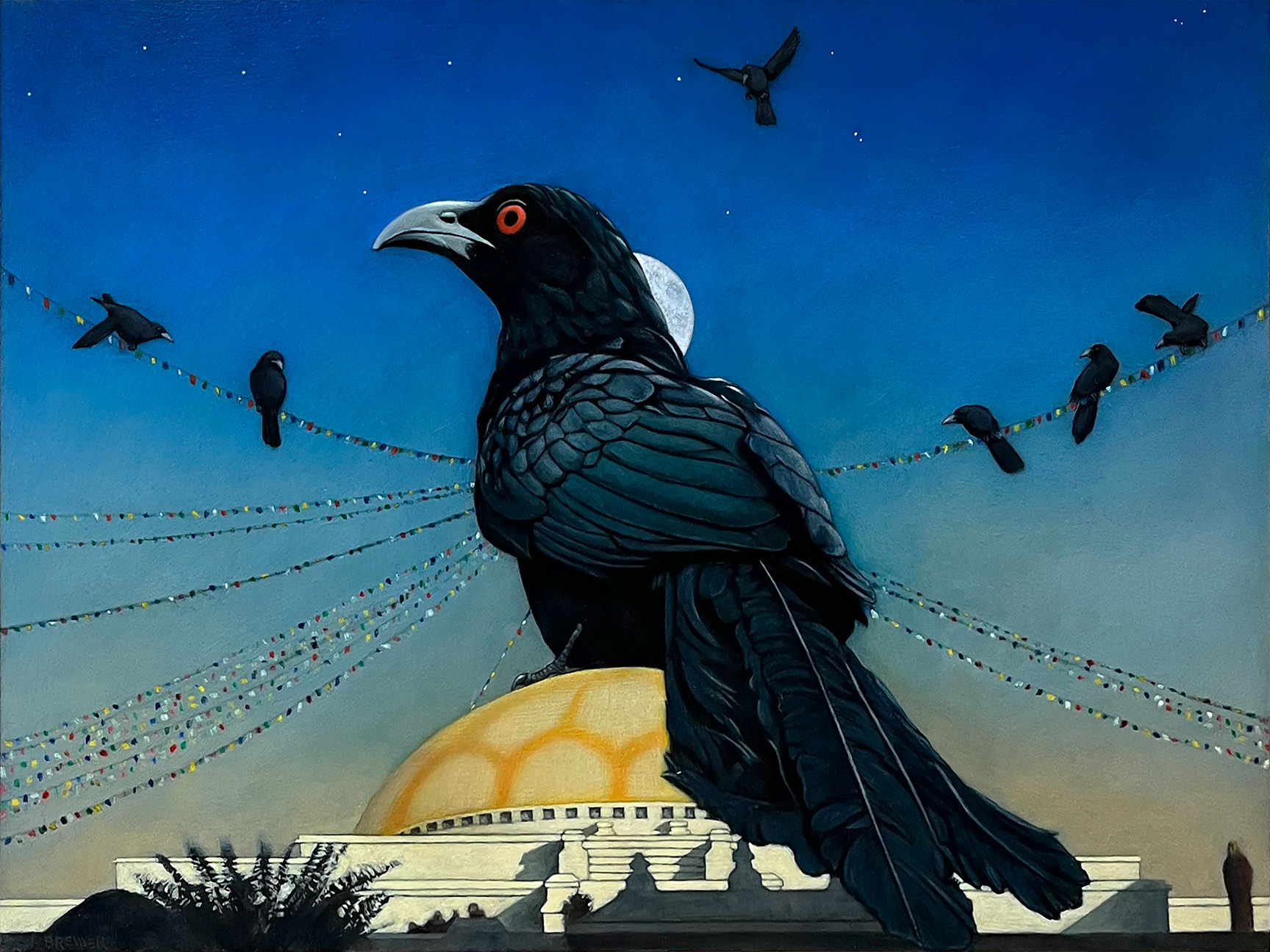 Cave Painting #13: Asian Koel. Mixed media on panel. 17.5x24.