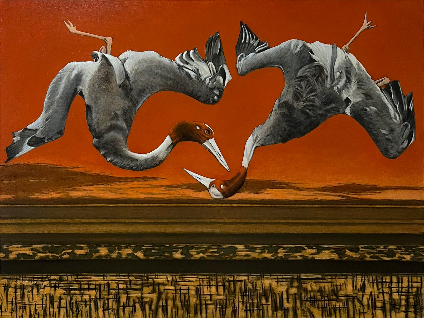 Cave Painting #15: Sarus Crane. Mixed media on panel. 18x24.