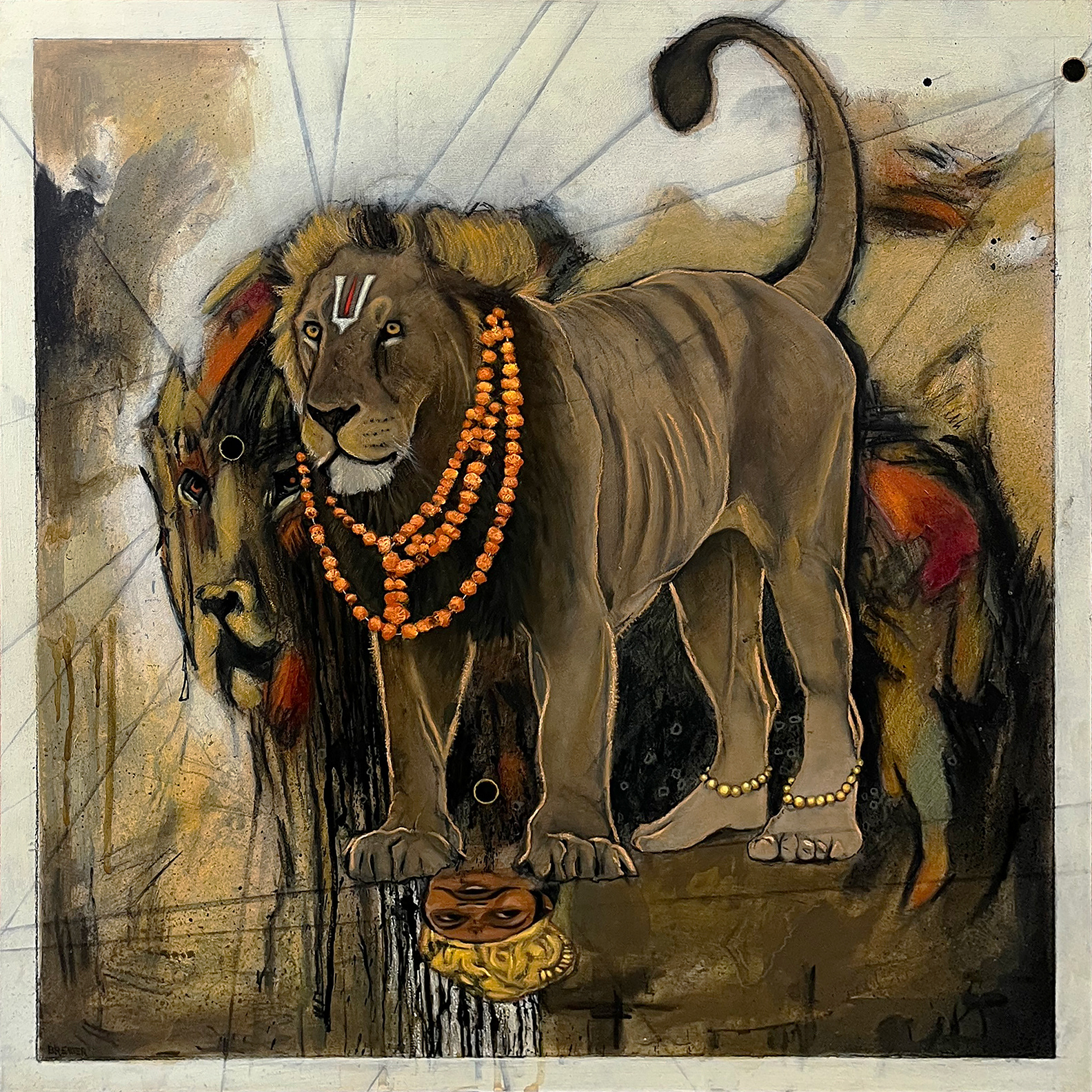 Cave Painting #16: Asiatic Llion. Mixed media on panel. 22x22.